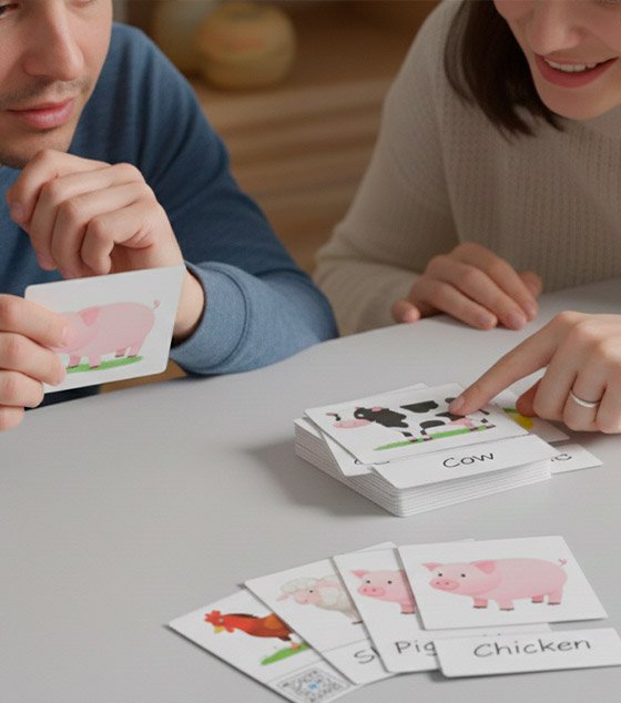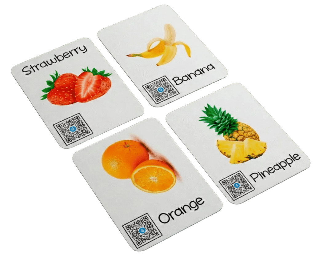 Os flashcards foram pensados para iniciantes, intermediários e avançados, porque o foco não é decorar palavras, mas criar associação visual, auditiva e prática.